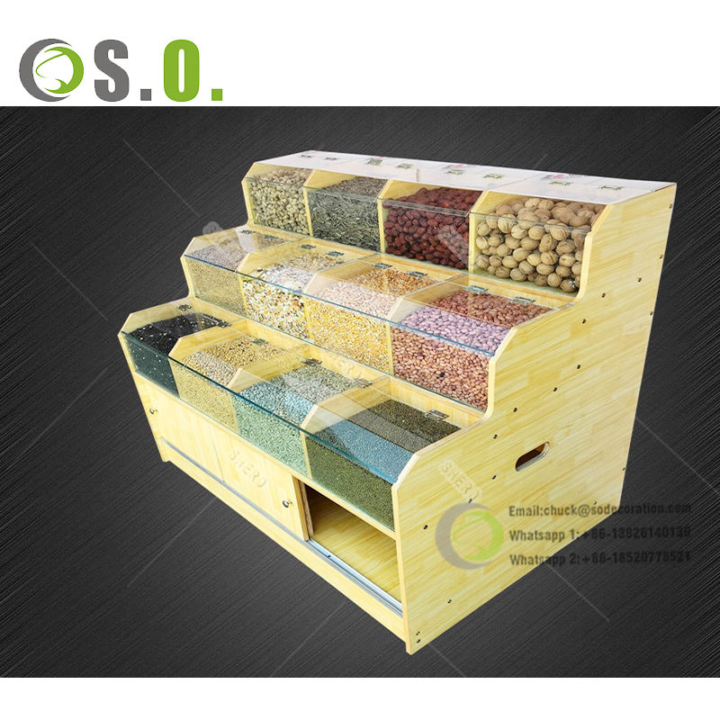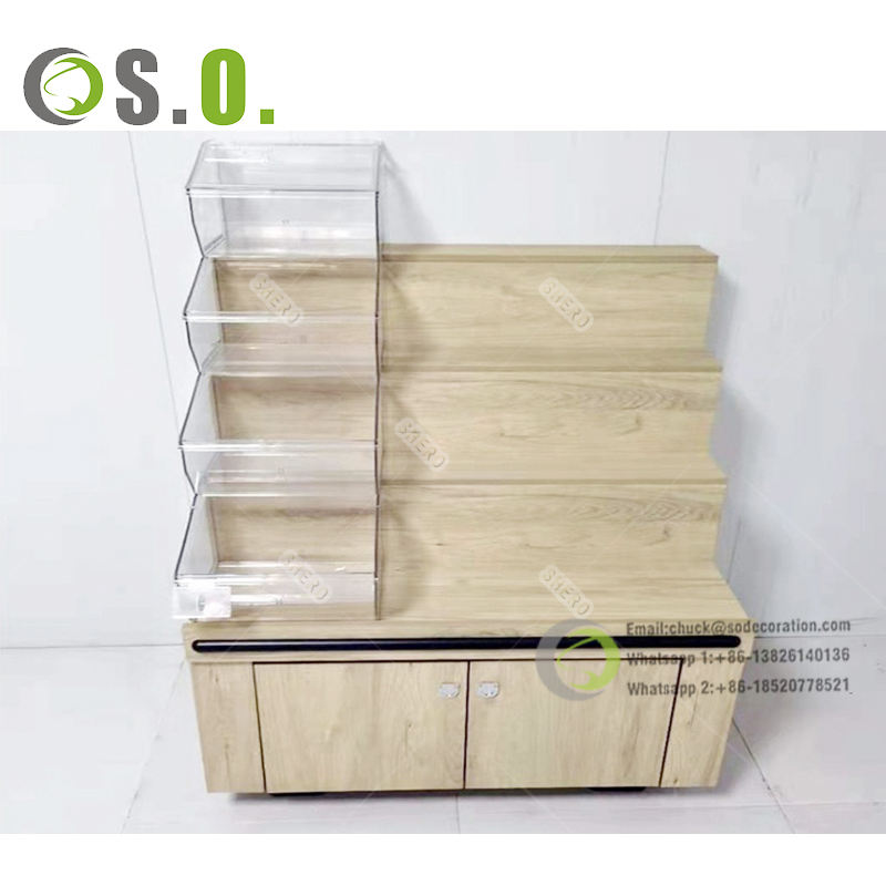 Custom Supermarket Retail Snack Food Biscuit Drink Bottle Potato Chip Wooden Display Rack Stand