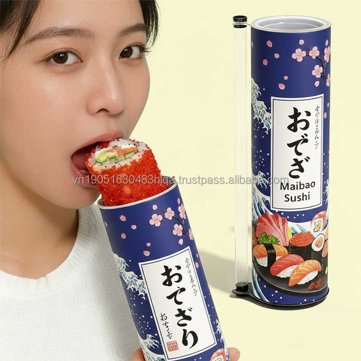 Custom Sushi Takeaway Paper Tube Box with Aluminum Foil Lining Push up Bottom and Independent Sauce Stick