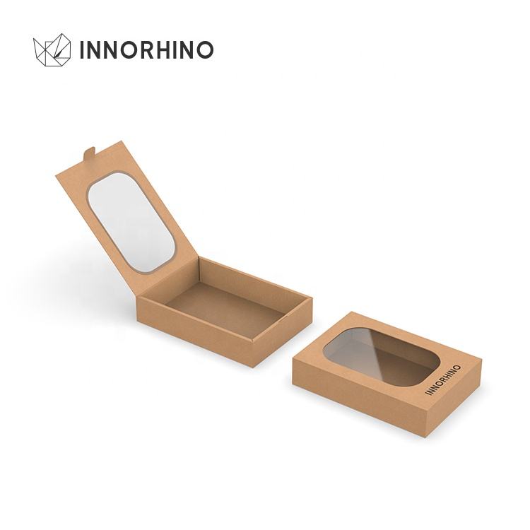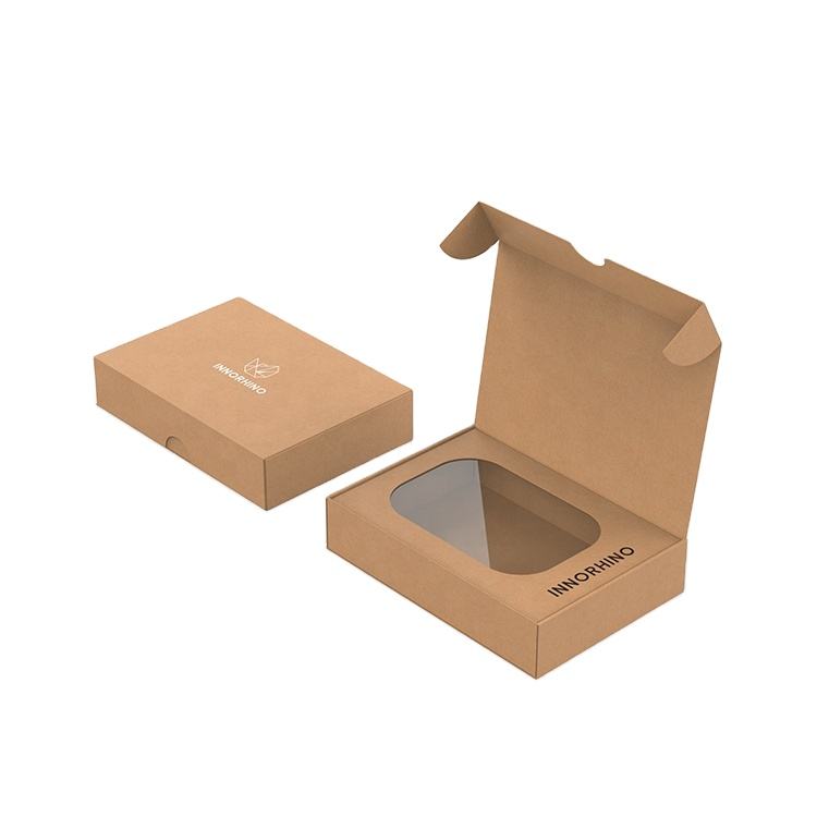 Custom Sustainable Kraft Corrugated Flip Box Clear Window for Ecommerce Clothes Streeware Fashion Gift Shipping Mailing