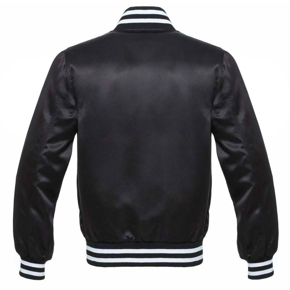 Custom Team Sports Jacket White Black Baseball Men's Varsity Satin Jackets Customized Top Quality Satin Bomber Jacket for man