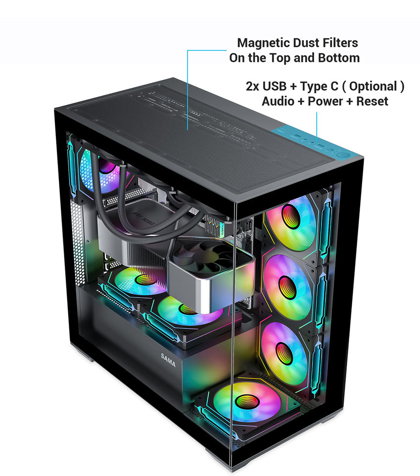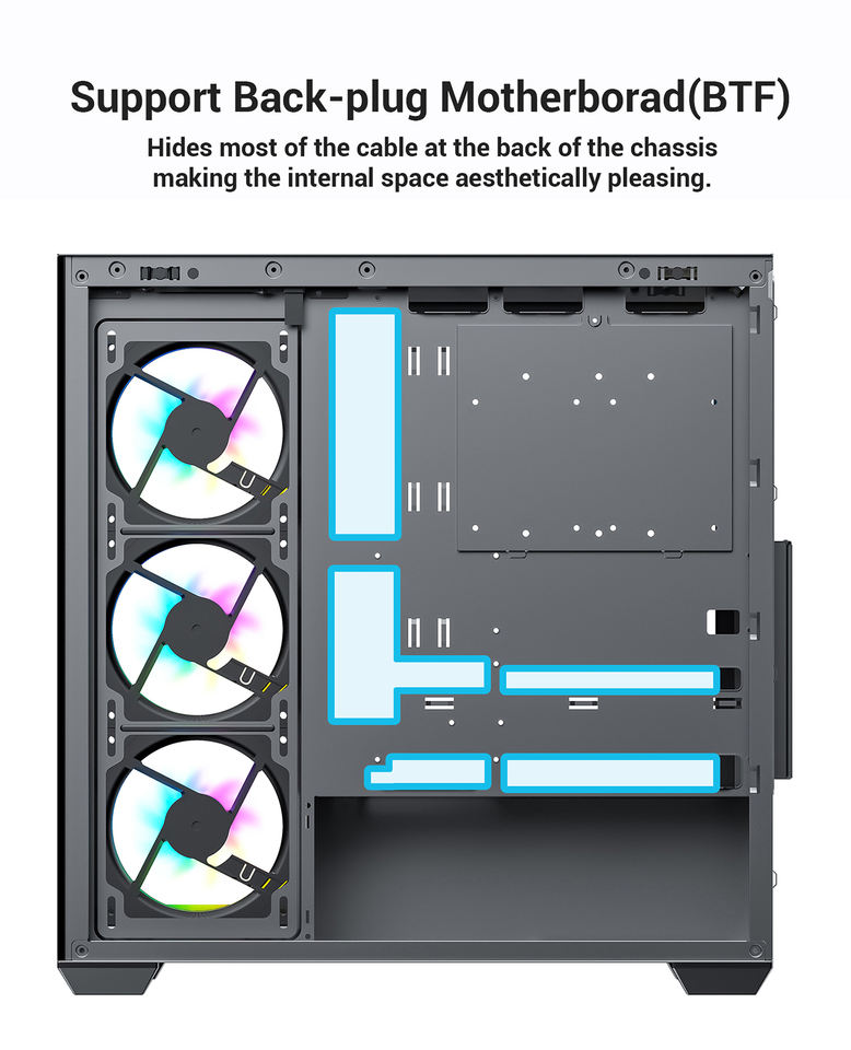 Feature:270° Tempered glass Side Panel without Screws
