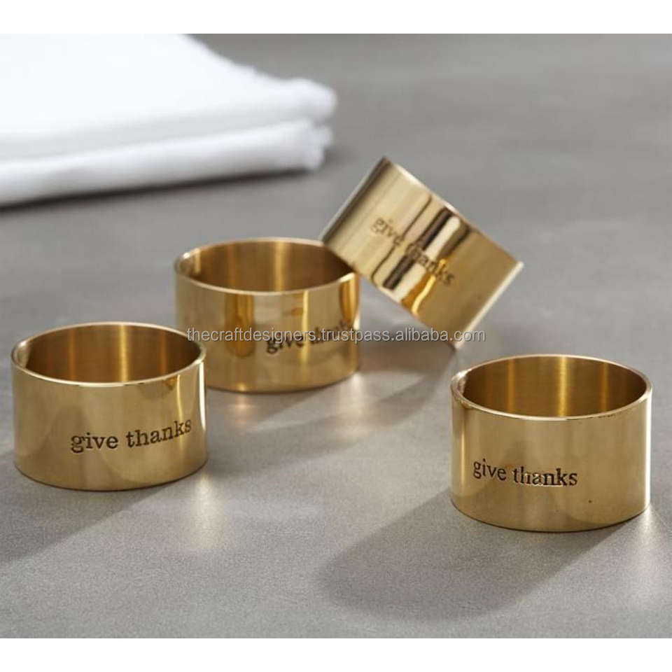 Custom Text Engrave Brass Napkin Rings Set of 4 Gold Luxury Napkin Ring Wedding Decoration Tableware Accessories