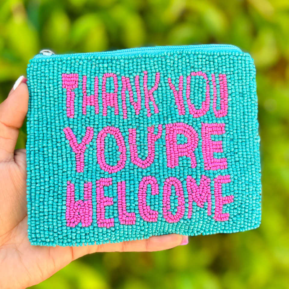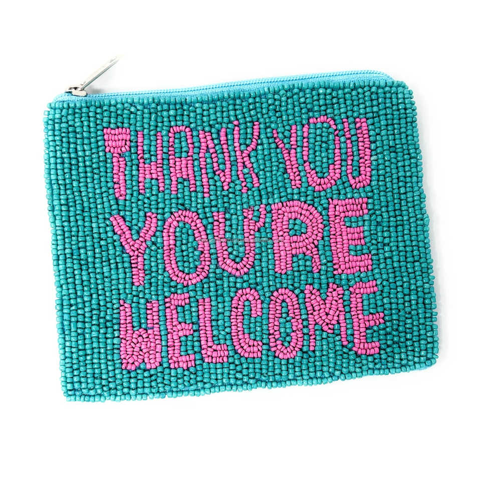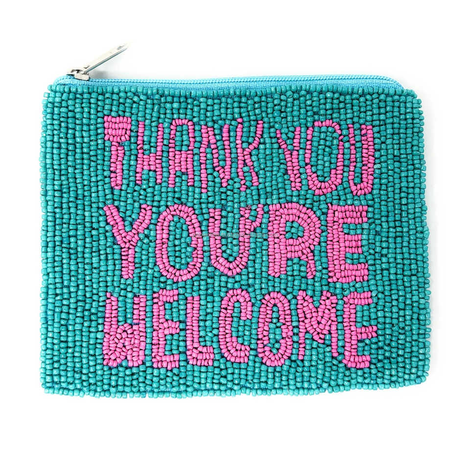 Handmade Beaded Zipper Coin Purse Unisex Custom Text Embroidery Pouch Eco-Friendly Durable Fashion Statement Clutch Compact