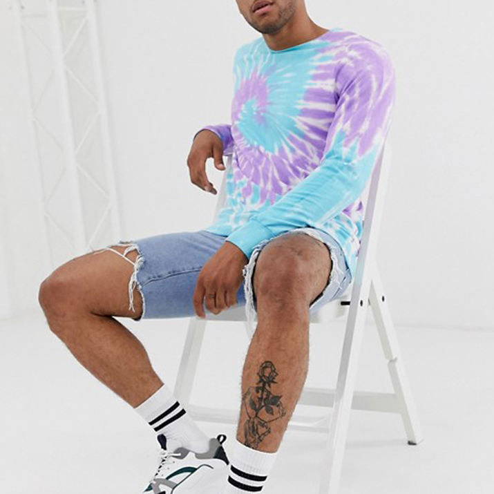 Custom Tie Die Lightweight Terry Cloth Purple Hoodie Colors Mens Fall Clothing French Terry Crew Neck Tie Dye Hoodies