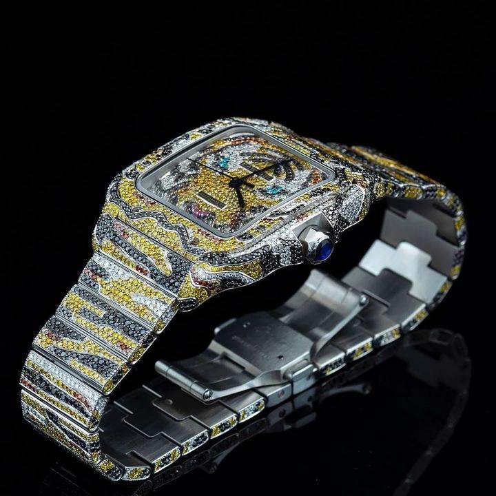 Custom Tiger Theme Iced Out Moissanite Watch for Men | Luxury Hip Hop Diamond Wrist Watch | VVS Clarity Stainless Steel Timepiec