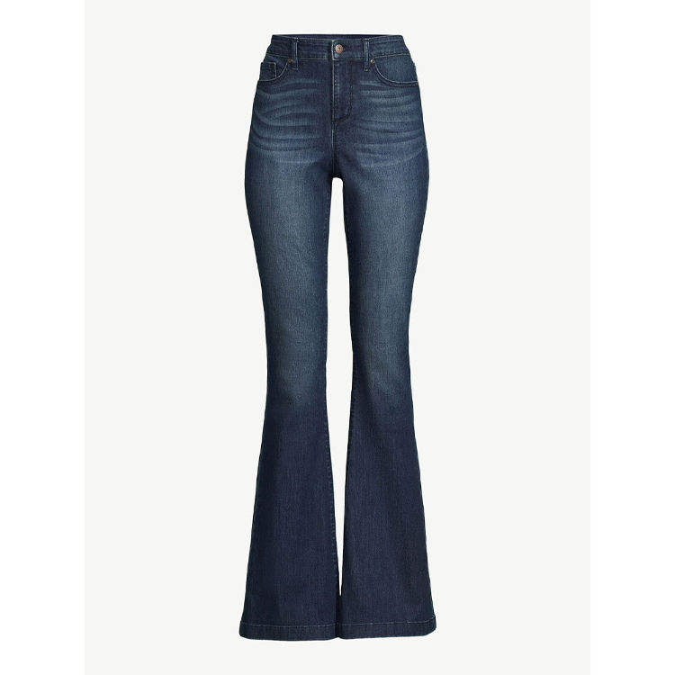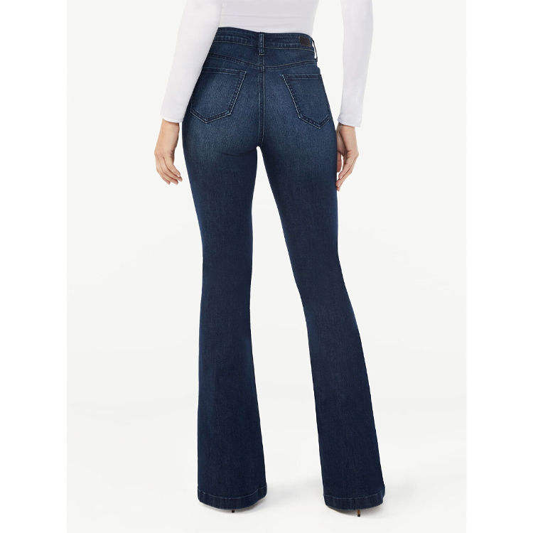 Custom Tight Fashionable Breathable Plus Size Women's Mid Waist Straight Casual Jeans High Rise Flare Washed