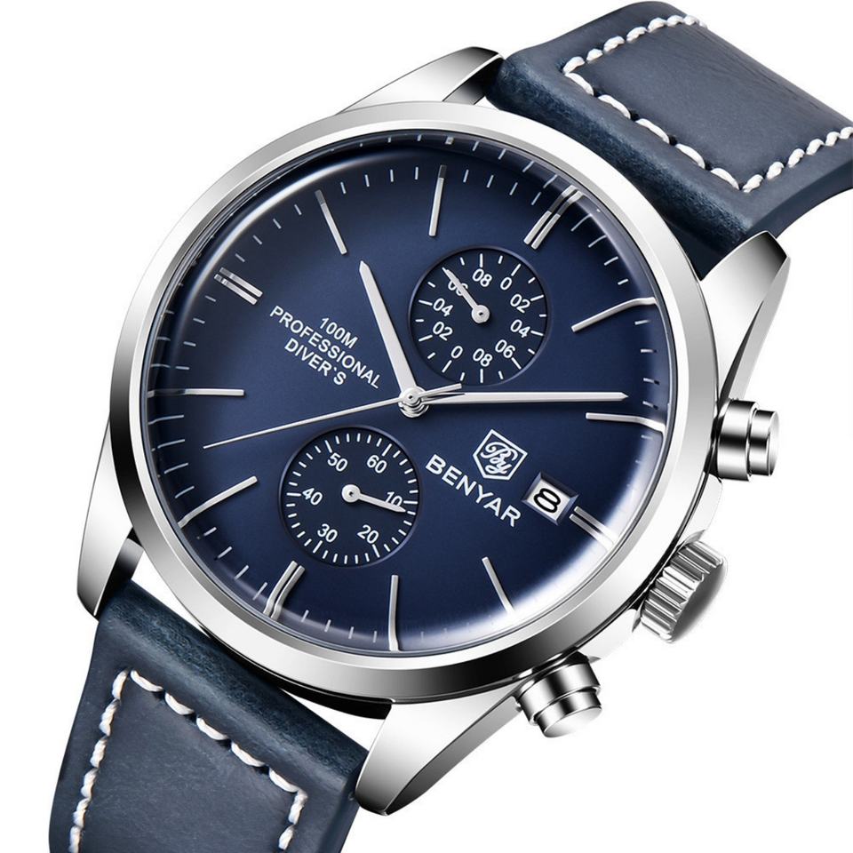 Custom Top Luxury Business Quartz Watches Benyar 5187 42mm Large Men's Fashionable Waterproof Glass Alloy Leather Strap Pointer