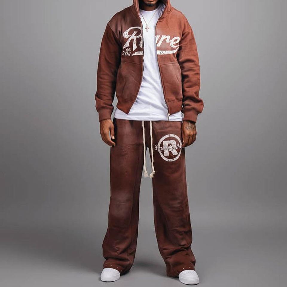 Custom Tracksuit Logo Black Crop Top Flared Sweatsuit Acid Wash Acid Wash Sweat Suit Sweatpants and Hoodie Sets