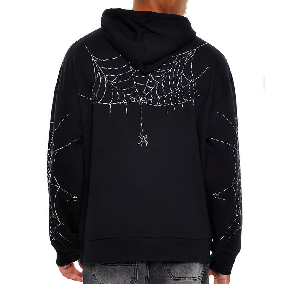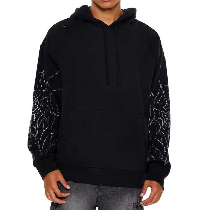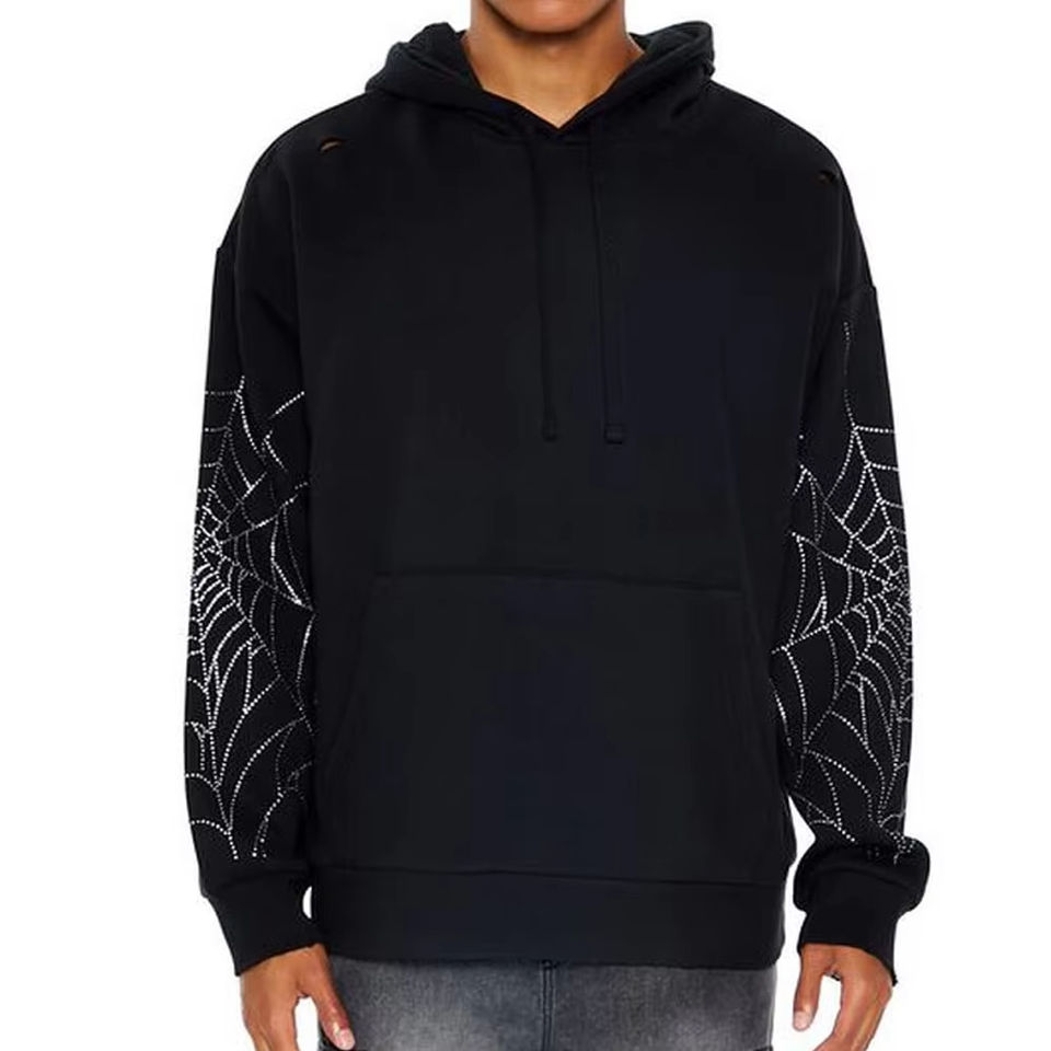 Custom Tracksuit Pullover Men Clothes Set Unisex 400 Gsm Hoodie Puff Print Luxury Designer Rhinestone Cropped Raw Hem Hoodie Men