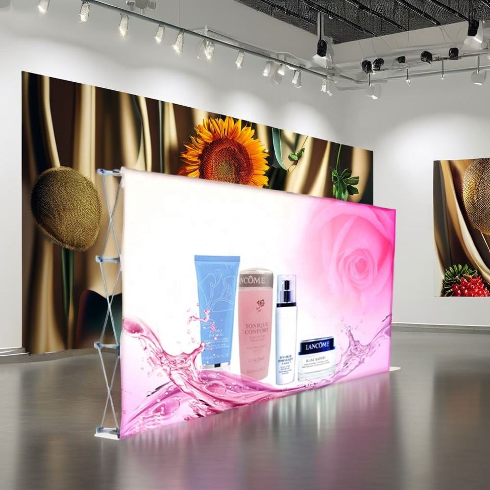 Custom Trade Show Advertising L Stand Pop Backdrop Tension Fabric Banner Partition Wall Display Aluminium Flagpole Customized