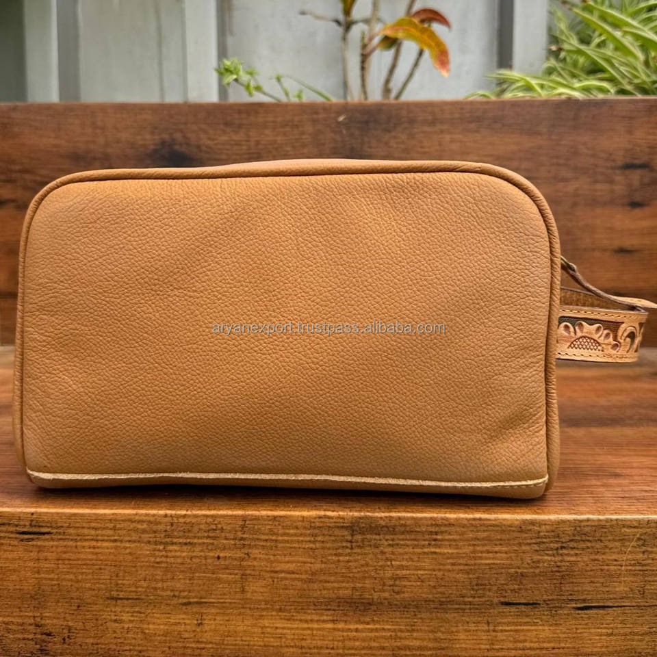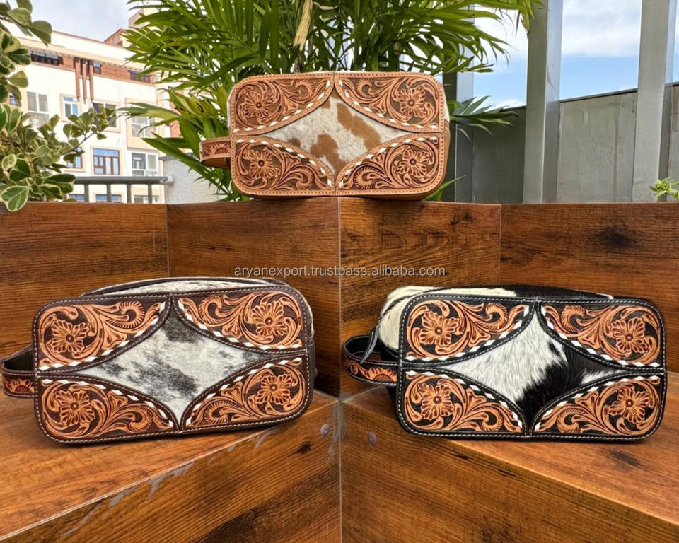 Hand Tooled Cowhide Leather Toiletry Pouch