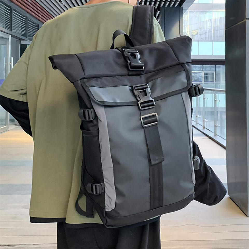 Custom Trendy Waterproof Roll Top Backpack Sports Travel Gym Bag Laptop Compartment Bags Men Backpack