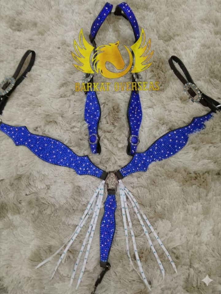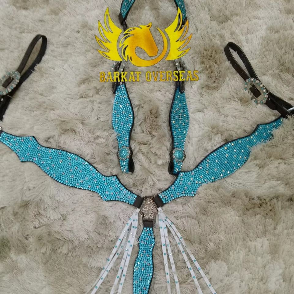 Custom Turquoise Rhinestones Crystal Bling Genuine Leather Horse Tack Set Lightweight Seasonal for comfy Horse riding Equipment