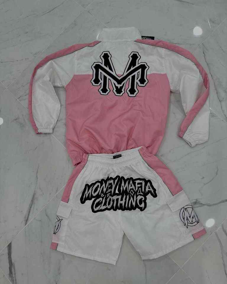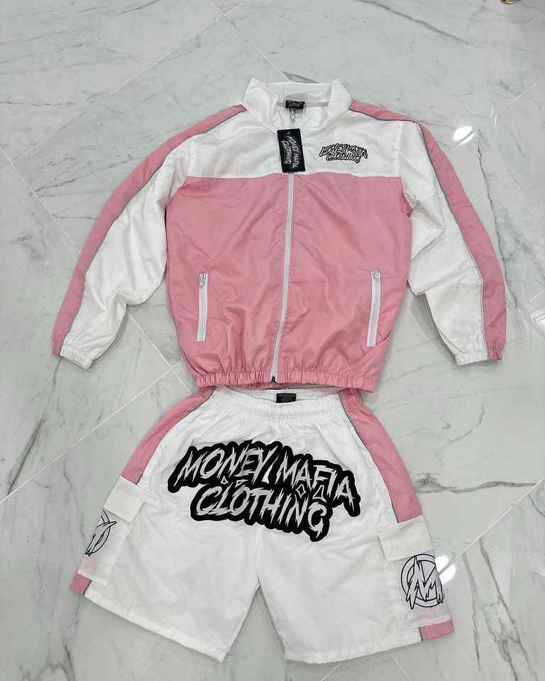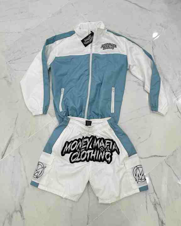 Custom Two Piece Windbreaker Short Jacket Set Patchwork Zip up Nylon Polyester Streetwear Tracksuit Men Windbreaker Short Set
