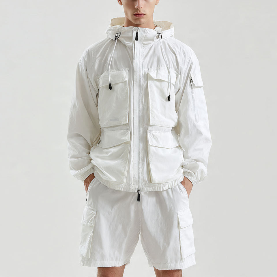 Custom Two Piece Windbreaker Shorts Jacket Set Men Hiking Hip Hop Windbreaker Suit Men's Mountain Rain Suit Men