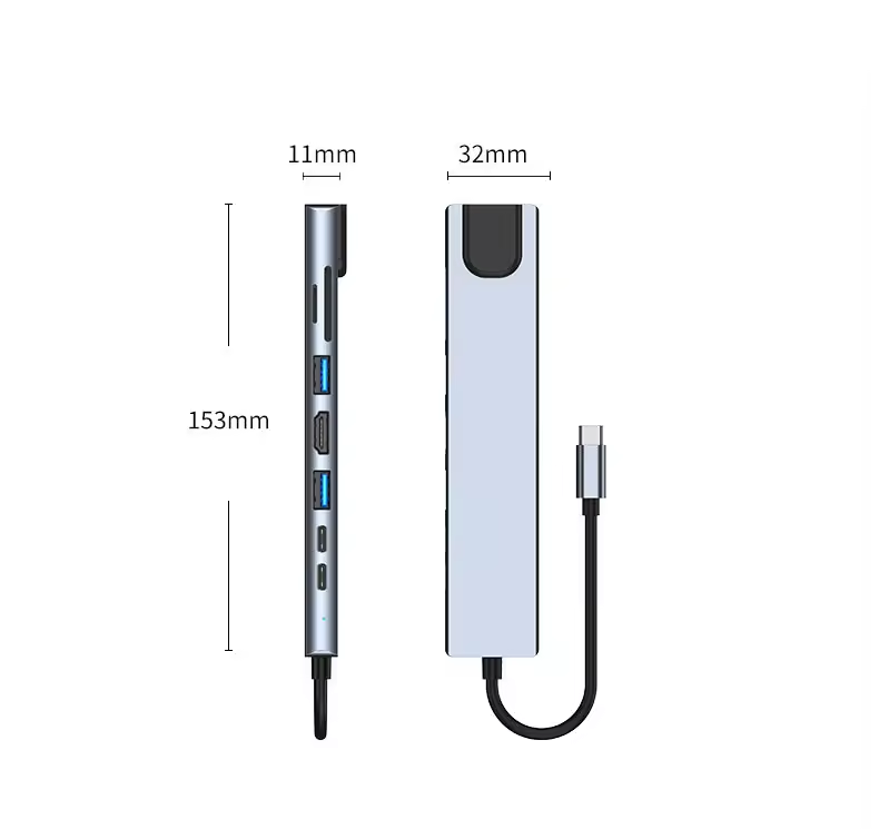 Custom Type-C Connector HUB Expansion Converter 8 in 1 Splitter Docking Station for MST Computer Laptop Phone SD Card Reader