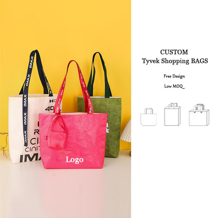 Custom Tyvek Tote Bag Printed Logo Pattern Kraft Paper Bag Eco Friendly Waterproof Gift Shopping Bag With Printed Logo