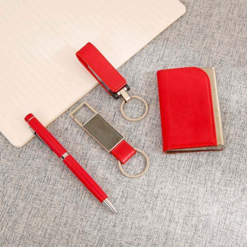Custom USB Drive Gift Set - Branded Flash Drive, Keychains, Business Card Case & Pen for Corporate Giveaways