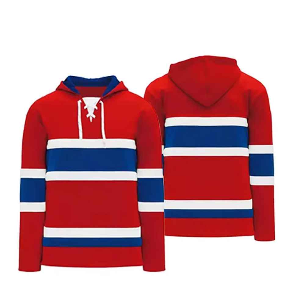 Custom Unique Hoodie Hockey Hoodie 100% Cotton Tackle Twill Team Ice Hockey Jersey with Hood Lace up Hockey Hoodie