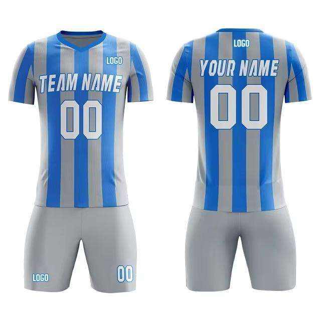 Custom Unisex Football Kit Breathable Quick Dry Plus Size UV Protection Jersey Shorts Set Blue Black Training Spring Autumn