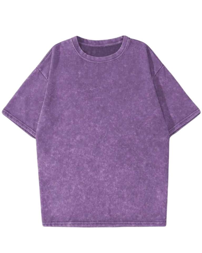 Custom Unisex Oversized Washed Purple Cotton T Shirt Vintage Acid Wash Drop Shoulder Streetwear Casual Unisex Tee Topwear