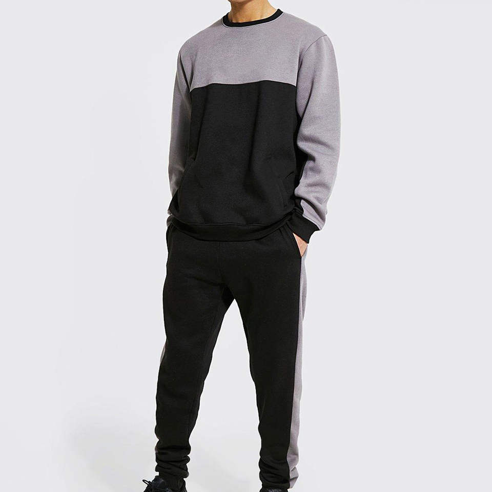 Custom Unisex Plain Black And Grey Color Tracksuit Set In Panels Quick Dry And Breathable Pullover Tracksuit Set