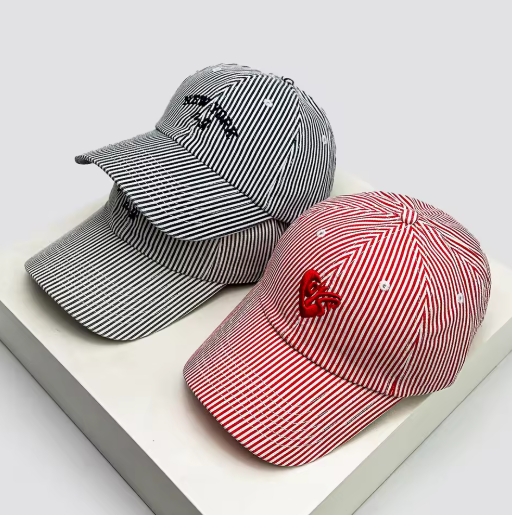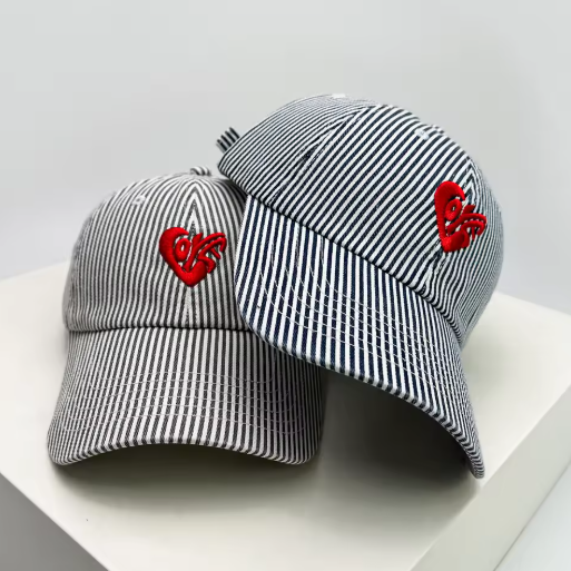 Wholesale Custom Vertical Stripes Baseball Hat Adjustable Logo Embroidery Love Letter Versatile Casual Cotton Caps Fashion Retro
