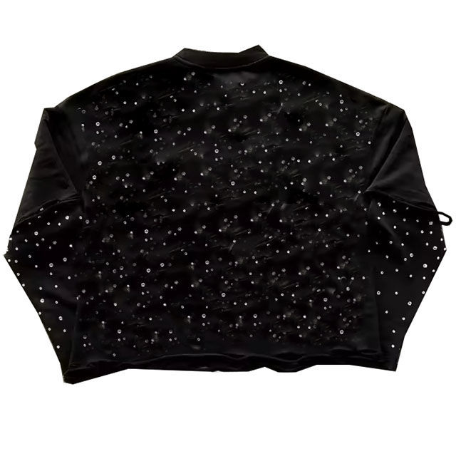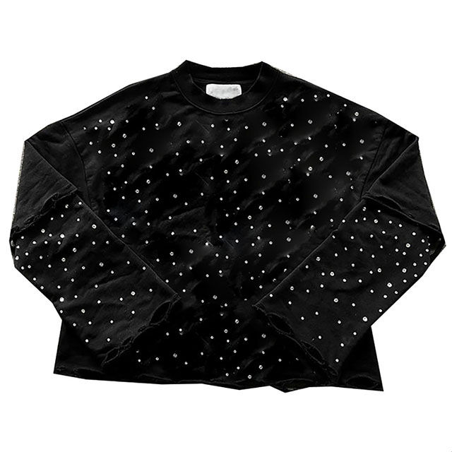 Custom Unisex Washed Distressed Patchwork Embroidery Double-Layer Long Sleeve Cotton Boxy Men's T-Shirts Rhinestone Detail