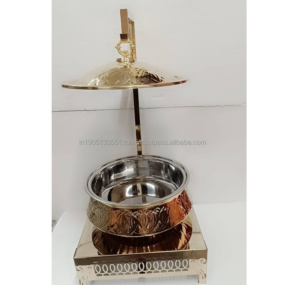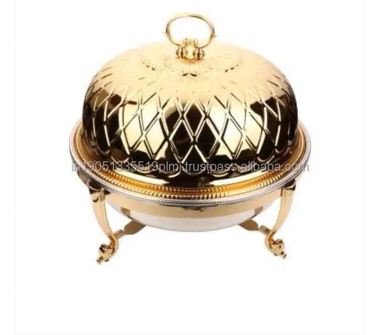 Custom Used Food Stainless Steel Gold Plated Luxury Chaffing Dishes Buffet Warmer 8 Liters CRAFT ASCENT Hotels Restaurants India