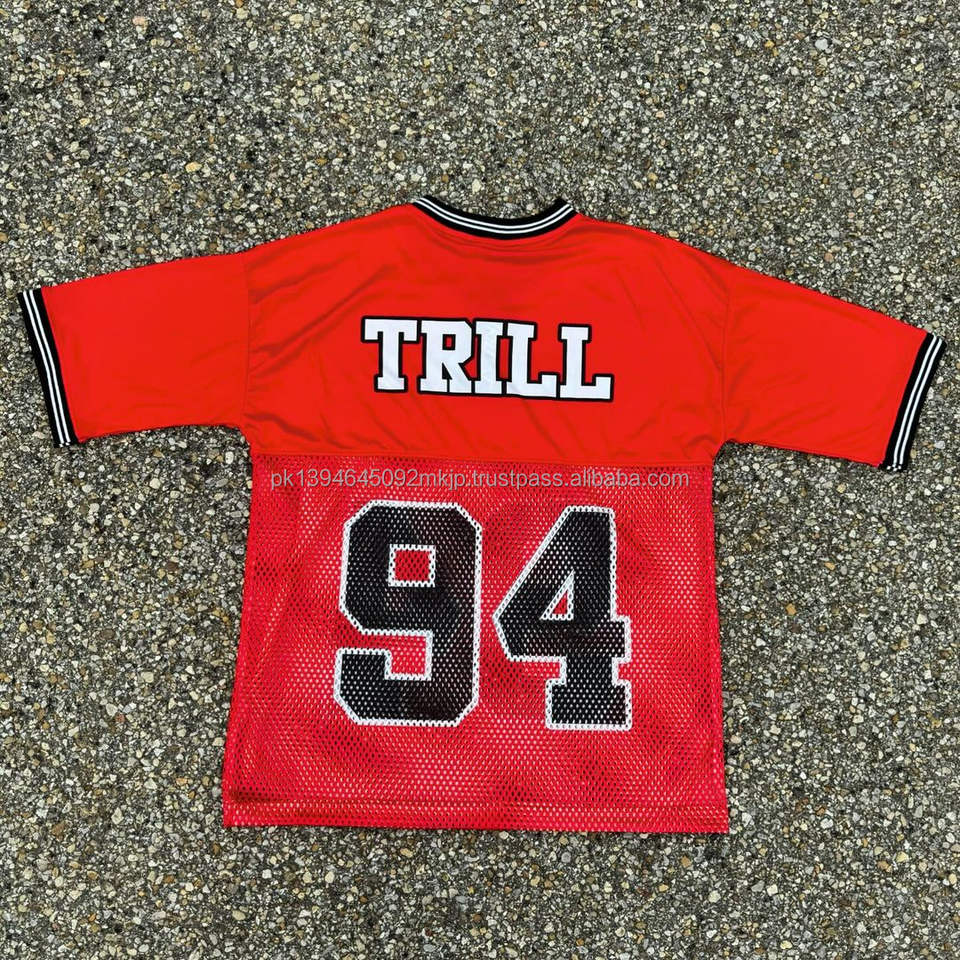 Custom V Neck Graphic T-Shirts Quick Dry Oversized Boxy Mesh Soccer Basketball Football Jersey T-shirt for Men