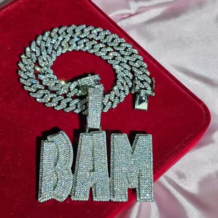 Custom VVS Moissanite Diamond Big Name Charm Necklace with Cuban Chain Trendy Personalized Pendant for Men Jewelry Accessory