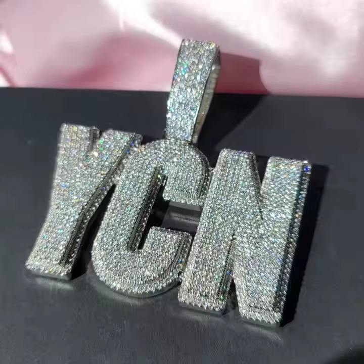 Custom VVS Moissanite Diamond Big Name Charm Necklace with Cuban Chain Trendy Personalized Pendant for Men Jewelry Accessory