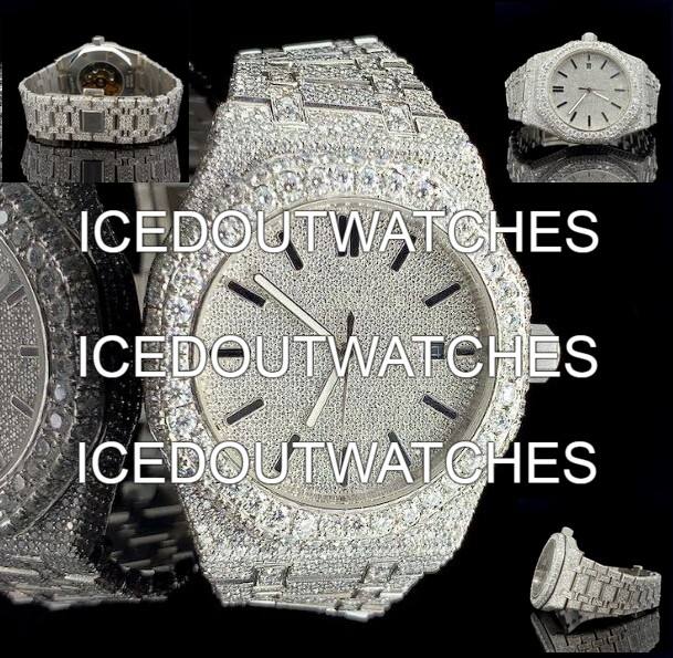 Custom VVS1 Moissanite Round Diamond Glass Dial Iced Out Stainless Steel 10 Bar Water Resistant Mens Luxury Watch Bracelet Clasp
