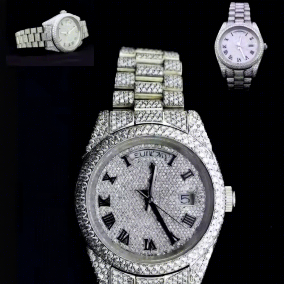 Custom VVS1 Moissanite Round Glass Dial Iced Out Stainless Steel Tester Pass Mens Luxury Watch 10 Bar Water Resistance