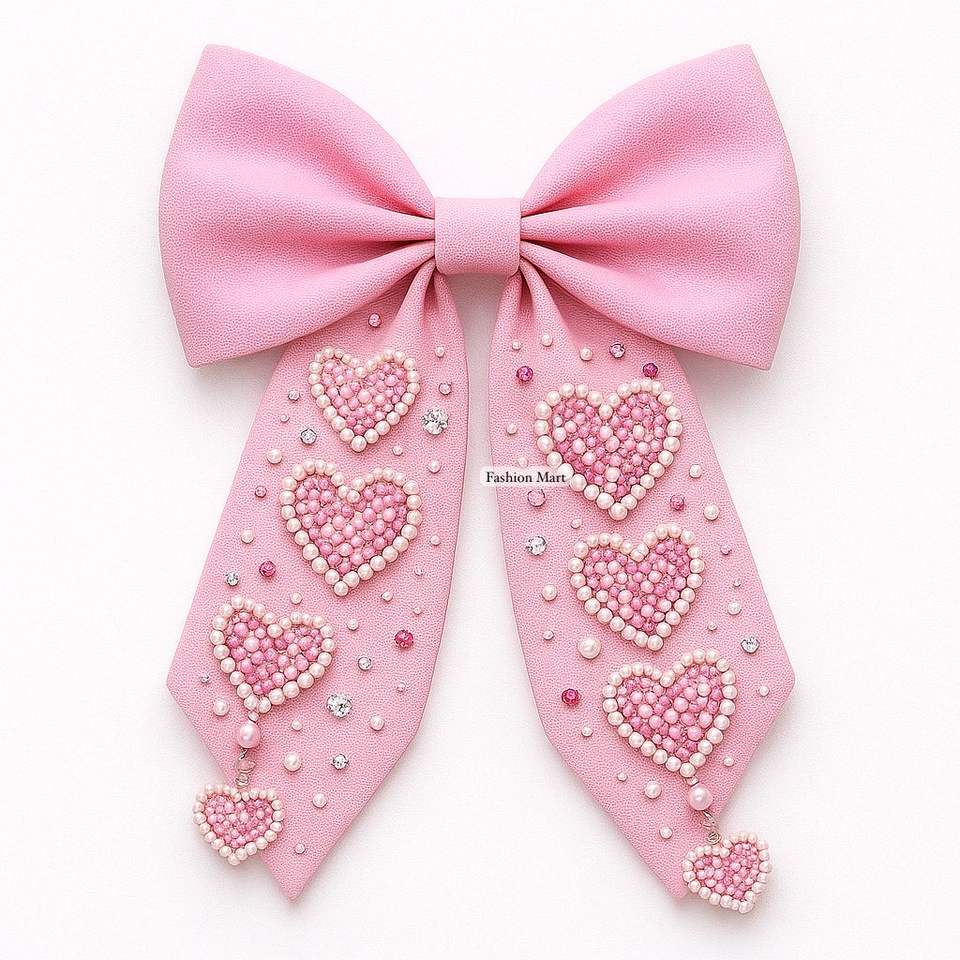 Custom Valentine Pink Beaded Bow Fashion Hair Accessories With Heart Beadwork