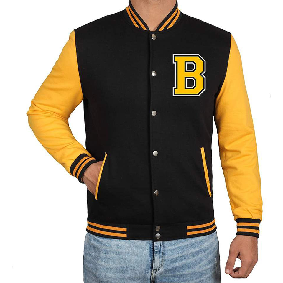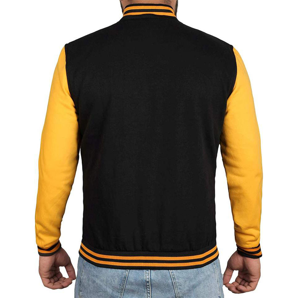Custom Varsity Jacket With Chenille Patch Mens Letterman Jacket Fleece Bomber Jacket Yellow Contrast Sleeves Baseball Jacket