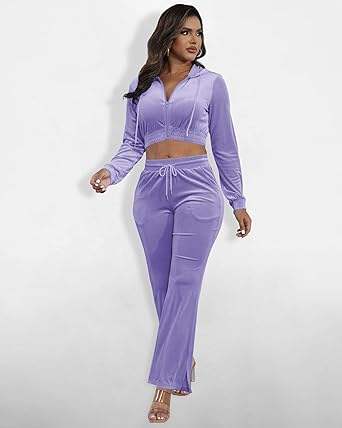 Custom Velour Jogging Purple Color Cropped Top Yoga Wears Velour Tracksuits Breathable Outerwear Winter Warm Girls Velvet Suits