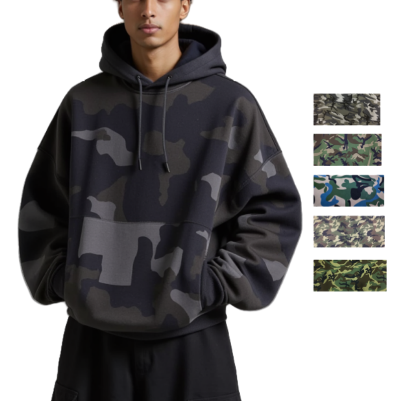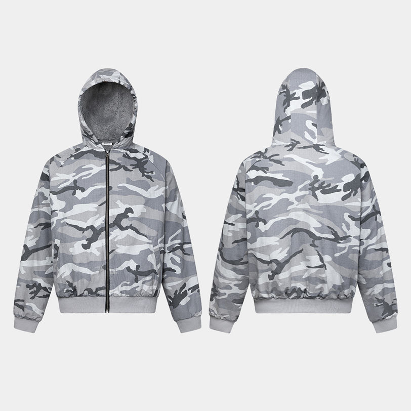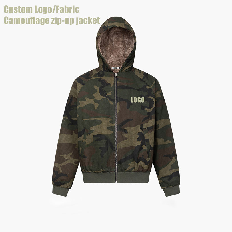 TKAN674 Custom Vintage Camo Hoodie Hip Hop Camouflage Jacket Embroidered Puff Technics Thick Fleecing Cardigan Coat for Men