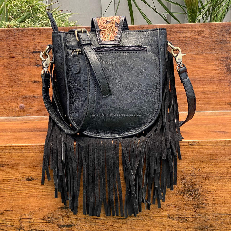 Product name:Hand Tooled Cowhide Leather Fringe Crossbody Bag