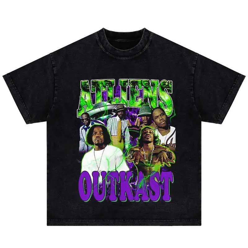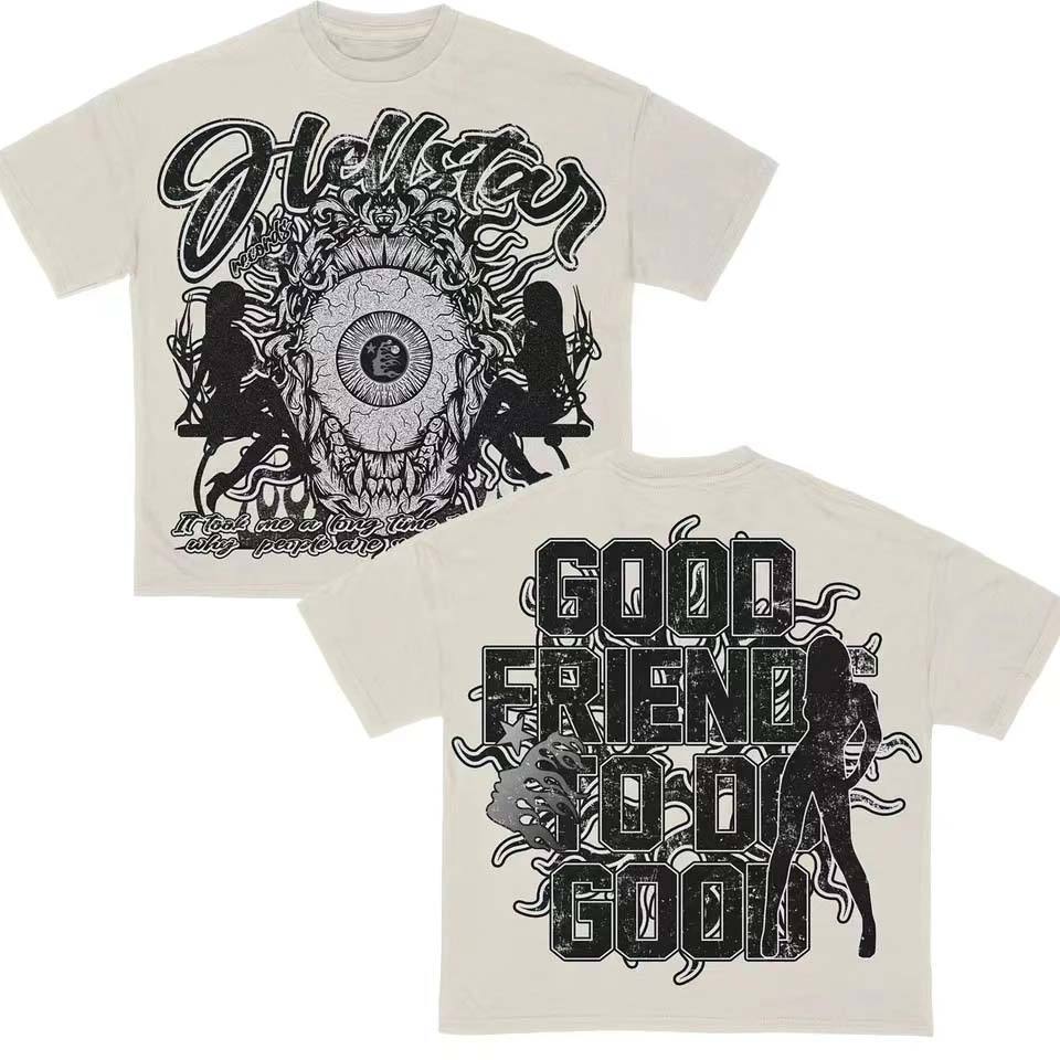 Custom Vintage Graphic Silk Screen Printed 100% Cotton Worsted Men's T-Shirts Eco-Friendly Loose Fit Cut Sew Garment Drop