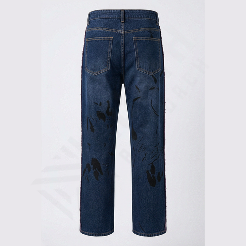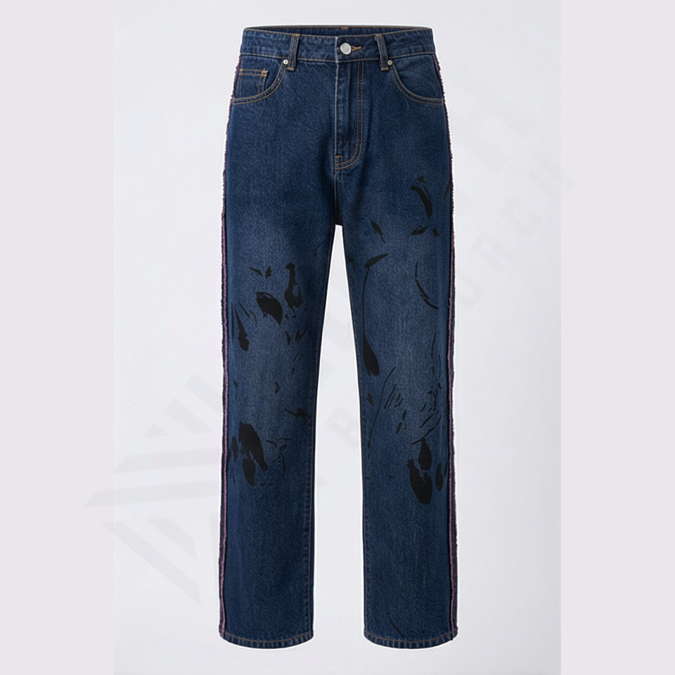Custom Vintage High Waist Men's Denim Baggy Jeans Button Fly Pants Rivet Wide Leg Multi Pockets Cargo Trousers Wholesale