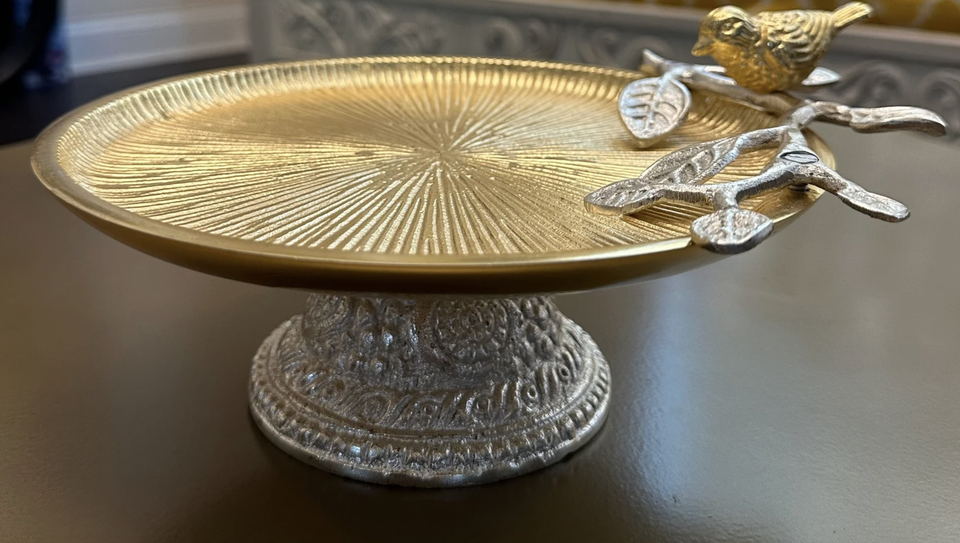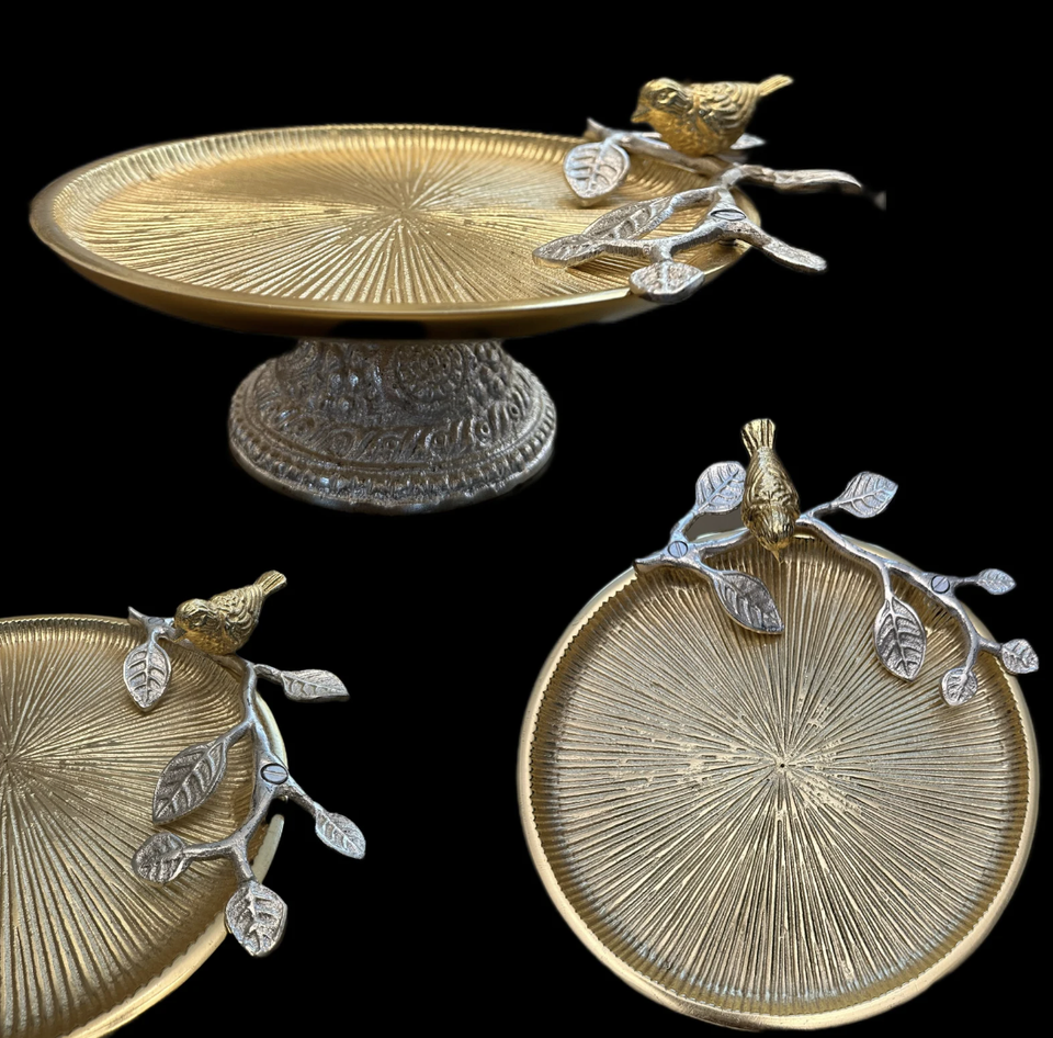Custom Vintage Metal Hotel Wedding Cake Stand Set with Golden Luxury Dessert Stand Stainless Steel & Brass Floral Pattern