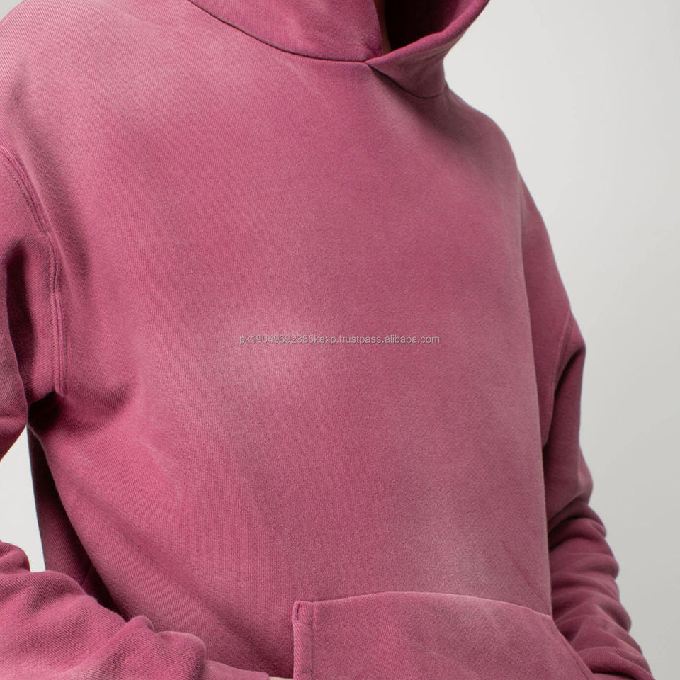 Custom Vintage Oversized Hoodie with Acid Washed Distressed Design Streetwear Thermal with Logo Plain Dyed for Winter