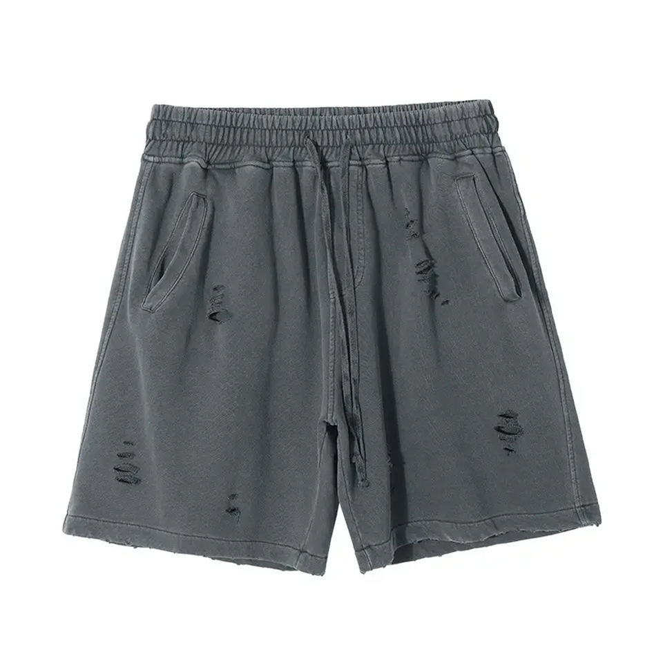 Custom Vintage Shorts Men Unisex High Street Style Jogger Washed Drawstring Cotton Distressed Shorts Customizable Short Jogger