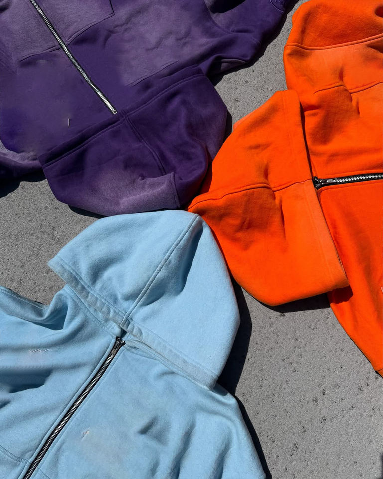 Custom Vintage Streatwear Heavy Weight Zip up Jacket Dtg Print Zipper French Terry Acid Wash Distressed Hoodie