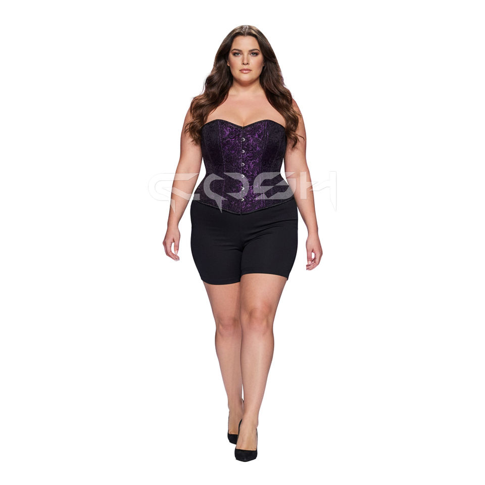 Custom Vintage Style Purple Brocade Corset Overbust Steel Boned Slimming Body Shaper Firm Control Corset Manufacturer