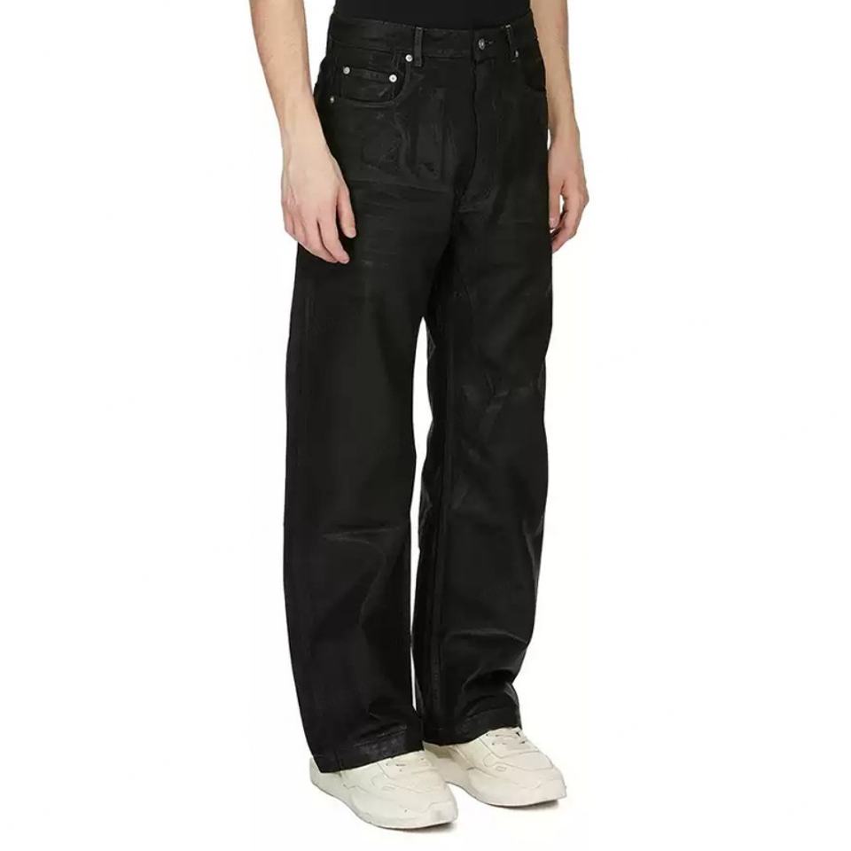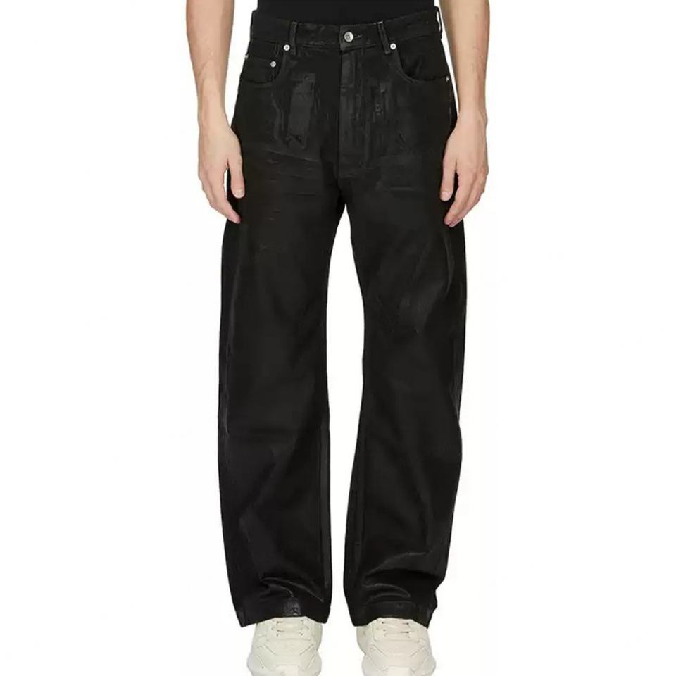 Custom Vintage Washed Denim for Men Black Foil Texture High Quality Cotton Trousers Baggy Straight Fit Pants Men's Jeans