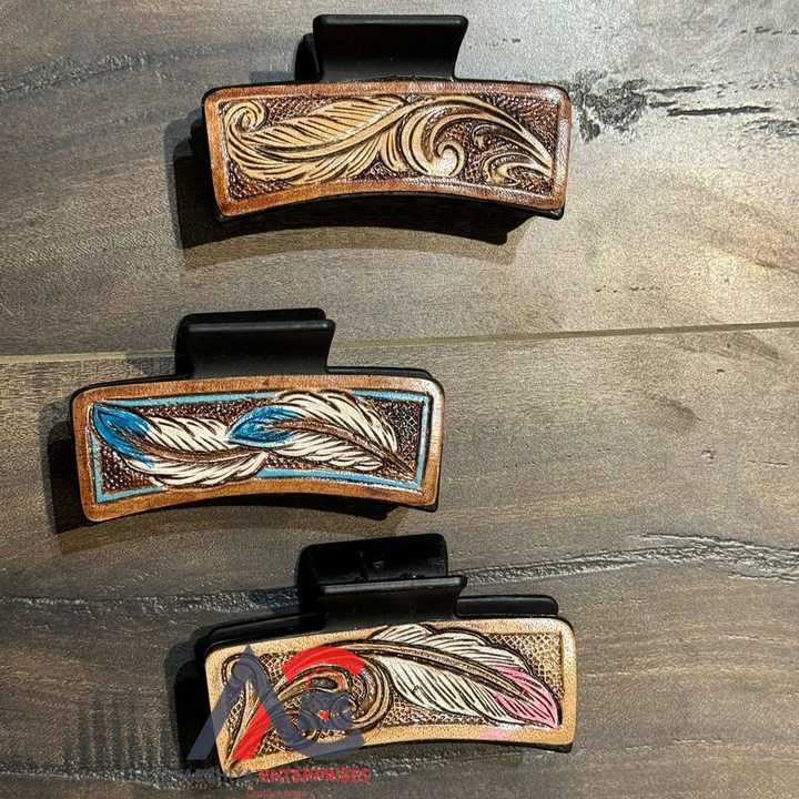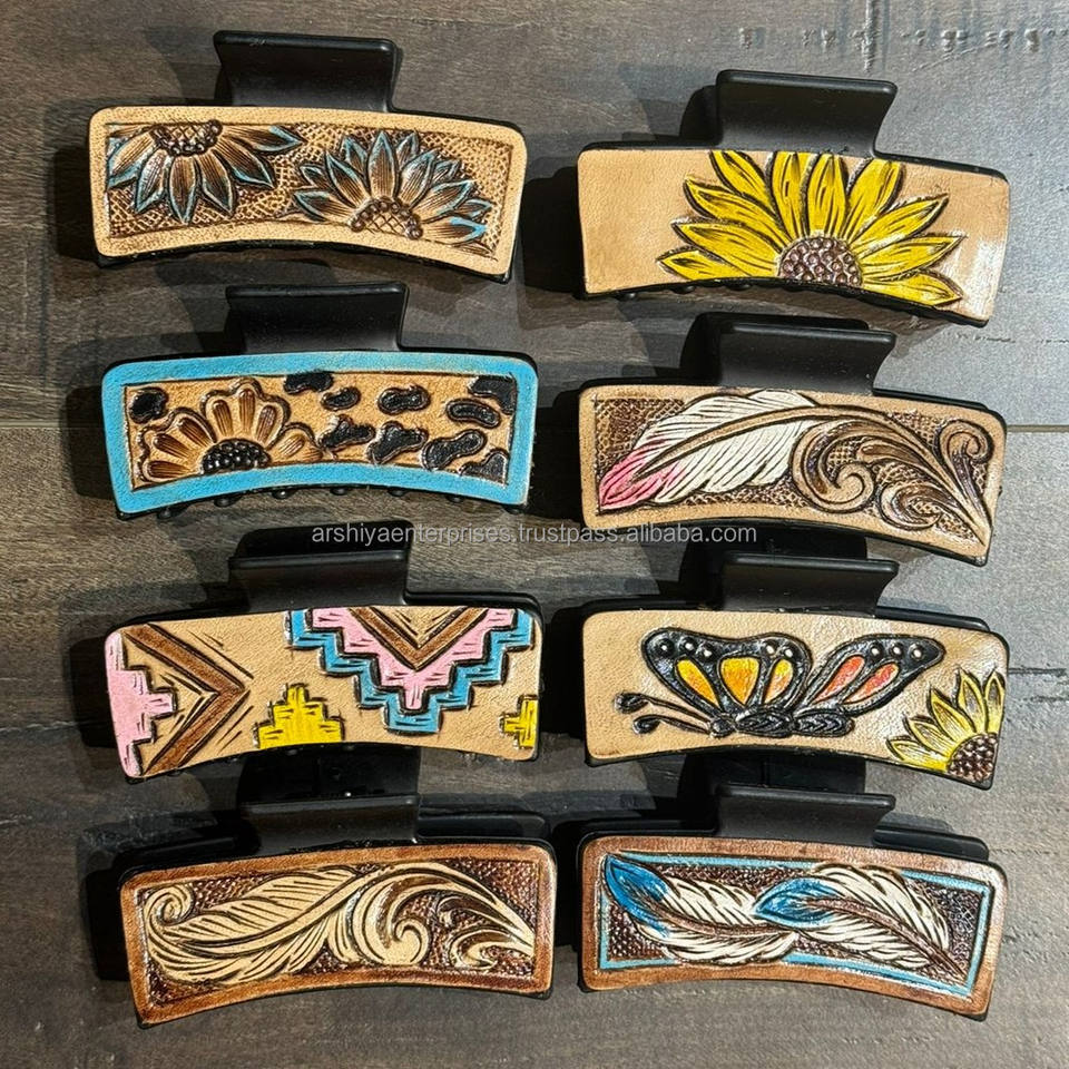 Product name:Hand Tooled Leather Women Hair Claw Clip