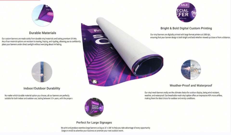Custom Vinyl Banner Full Color Printing Single and Double Sided Option Indoor Outdoor Advertising Hanging Banners