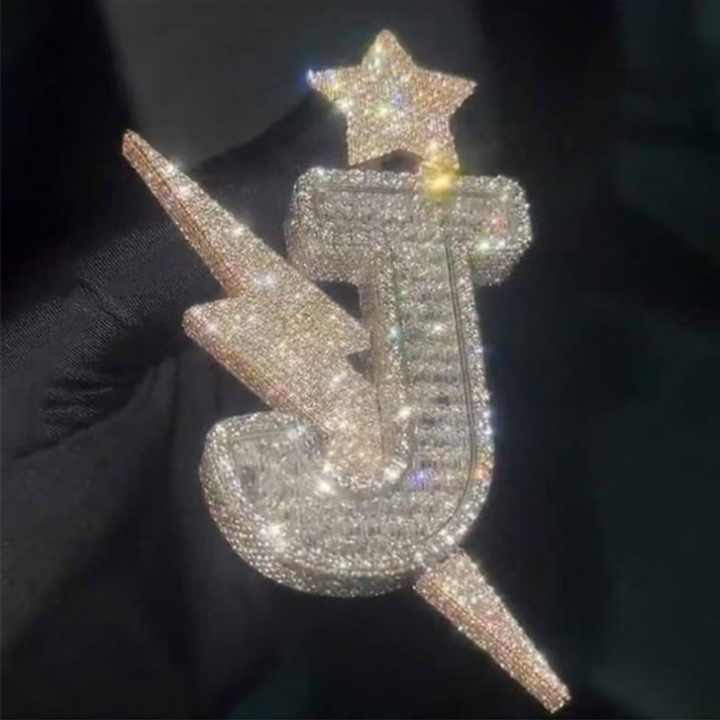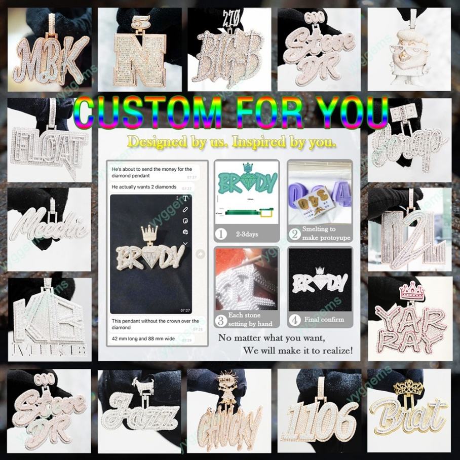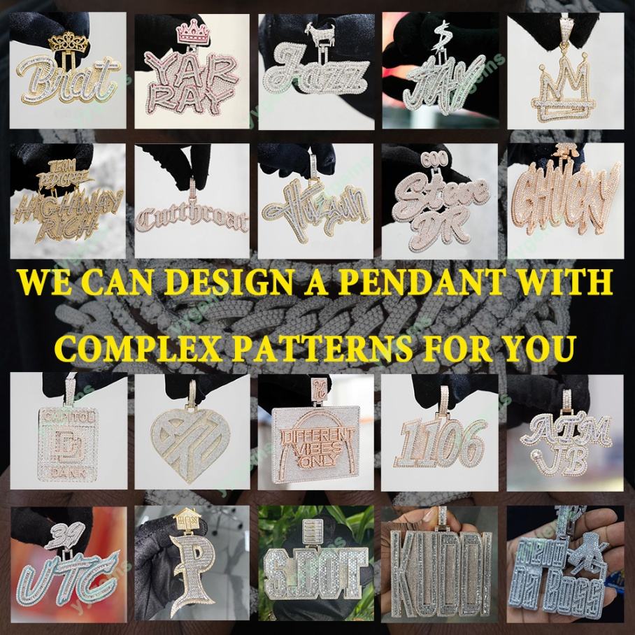 Custom Vvs Moissanite Diamond Pendant Men Custom Iced Out Jewelry 925 Silver Letter Name Initial Hip Hop Cuban Chian Pendants